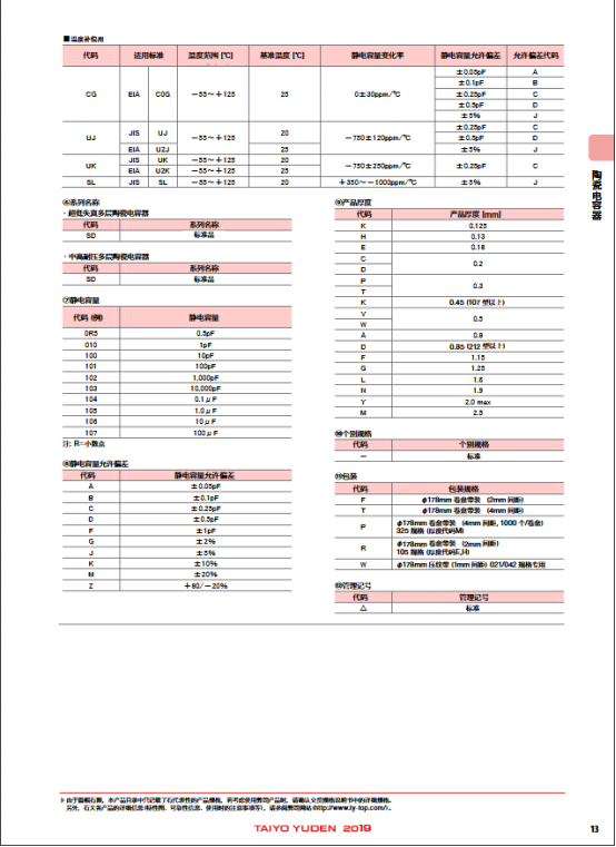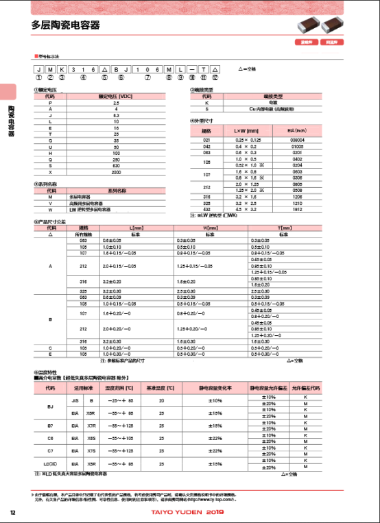目前国内以及台系厂商缺乏的就是高容值的技术,正好TAIYO(太阳诱电)进行弥补。但是由于太阳诱电主要产品集中在高容值,大尺寸,因此整个市场的使用占有率不是很高,所以我们将太阳诱电的电容命名规则做如下展示: