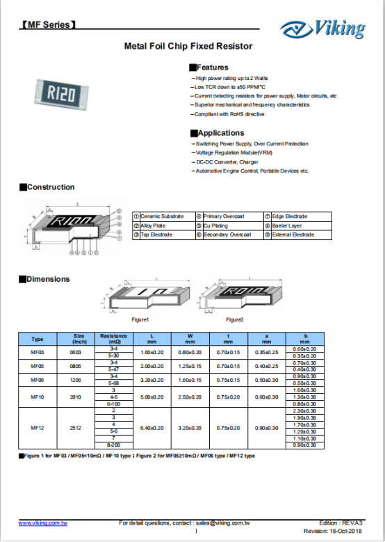 该电阻为金属箔电阻,可以实现高功率,低成本,低温漂,性能远远高于普通厚膜电阻,成本远远低于合金电阻,该产品是光颉(VIKING)新品推荐,主要适用于PD快充,移动电源,电池保护板等等。