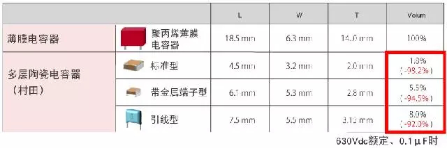 接下来,我们用具体的例子来说明薄膜电容器和片式陶瓷电容器的区别,以及小型化和节约成本的特点。