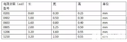 随着新技术的不断发展,目前电阻的种类有很多种,常见的有:薄膜和厚膜电阻(贴片电阻)、金属膜电阻、碳膜电阻、绕线电阻等。其中,贴片电阻器又可分为低阻值贴片电阻器,贴片电阻器阵列,贴片网络电阻器等。 贴片电阻器的封装和尺寸的关系(长,宽,高)0201封装电阻对应的尺寸大小为(0.6,0.3,0.23),0402封装电阻对应的尺寸大小为(1.0,0.5,0.3),0603封装电阻对应的尺寸大小为(1.6,0.8,0.4),0805封装电阻对应的尺寸大小为(2.0,1.25,0.5),1206封装电阻对应的尺寸大小为(3.2,1.6,0.55),1210封装电阻对应的尺寸大小为(3.2,2.5,0.55)等,具体的尺寸与封装对应图如下图所示: