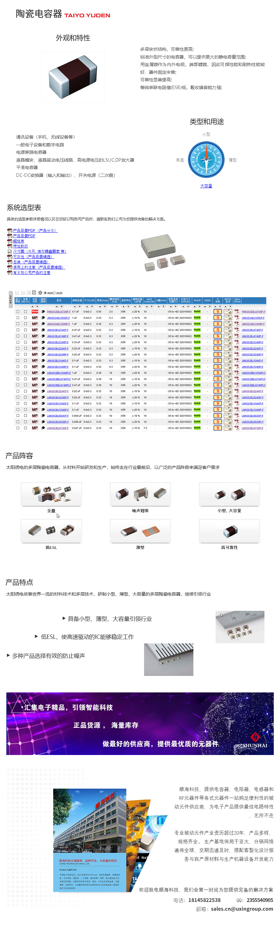 主要尺寸集中在0201到2220之间为主,主要容值以高容值为主,从0.1UF到220UF之间为主,耐压值主要集中在6.3V到100V之间。