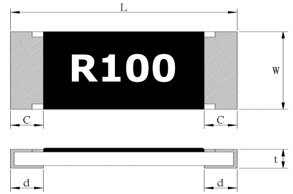 标记:电阻值用4位数字表示,第一个“R”表示小数点,其他数字表示Ω中的正常电阻。例如,120mΩ=R120=0.12Ω。