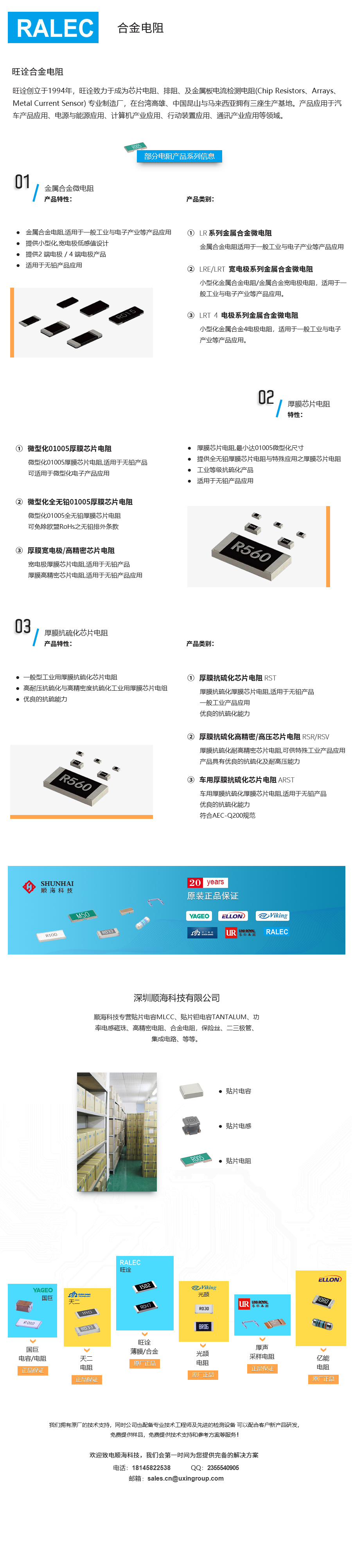 旺诠合金电阻是旺诠科技创立于1994年,旺诠致力于成为芯片电阻、排阻、及金属板电流检测电阻,合金电阻(Chip Resistors、Arrays、Metal Current Sensor) 专业制造厂,在台湾高雄、中国昆山与马来西亚拥有三座生产基地。2017年并入奇力新集团后,在2018年于中国湖南沅陵兴建新的生产基地,除了专注在高质量的产品制造,更加强研发精密度更高、体积更小的精密产品,因应市场需求与发展趋势,更加强投资开发金属板电流检测电阻,以提供全球客户高信赖度与创新的产品,目标朝向技术领先的芯片电阻专业制造商。